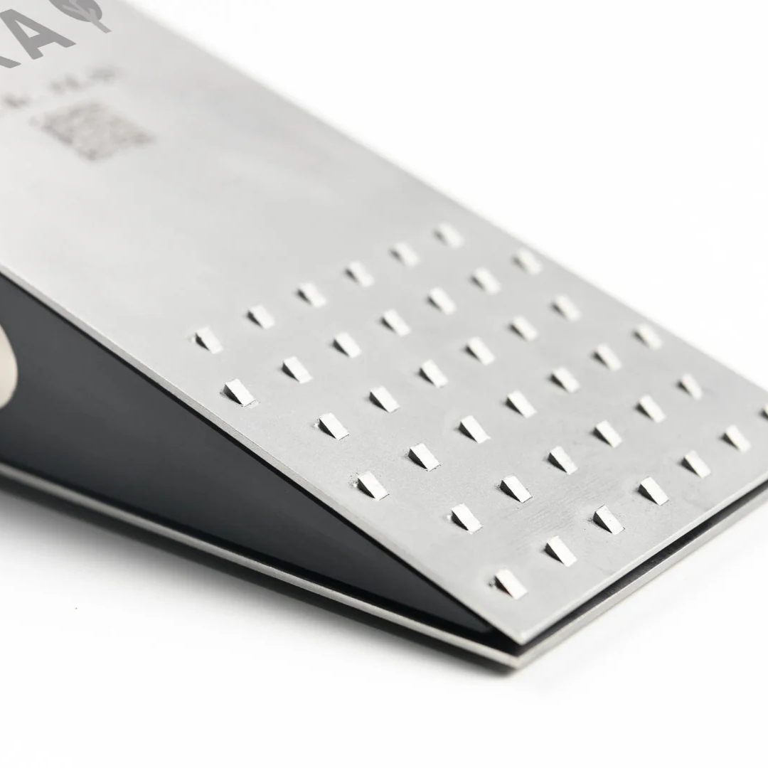 Die Haltezähne sind scharfkantig ausgeführt und die Kavitäten sind rücklinks gegen das Zurückbiegen verschweißt und geglättet. Dadurch sichern wir einen sehr guten Selbsthalt des Keils gegen das Herausrutschen aus dem Sägespalt, da Sie so optimal ins Baumholz des Sägespalts eingreifen.