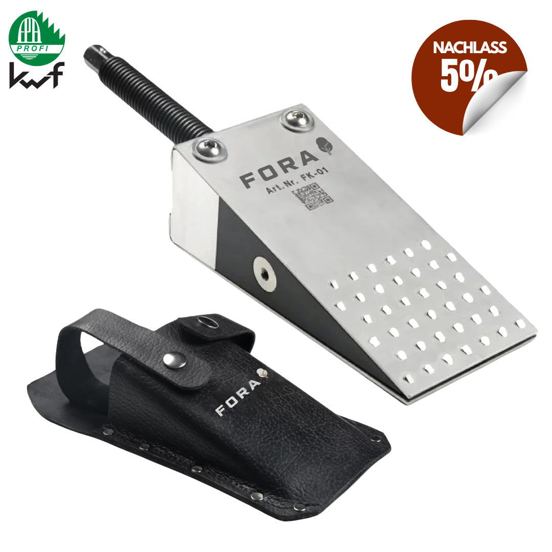 Dieses Set mit 5% Nachlass besteht aus dem mechanischen Fällkeil FK 01-12 R & der Transport-Ledertasche FL-01.